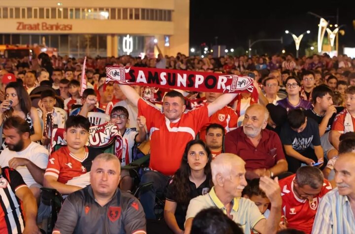 UEFA Avrupa Ligi play-off çeşidinde Panathinaikos ile karşılaşan Samsunspor'un maçı, Samsun'da kurulan dev ekranla...